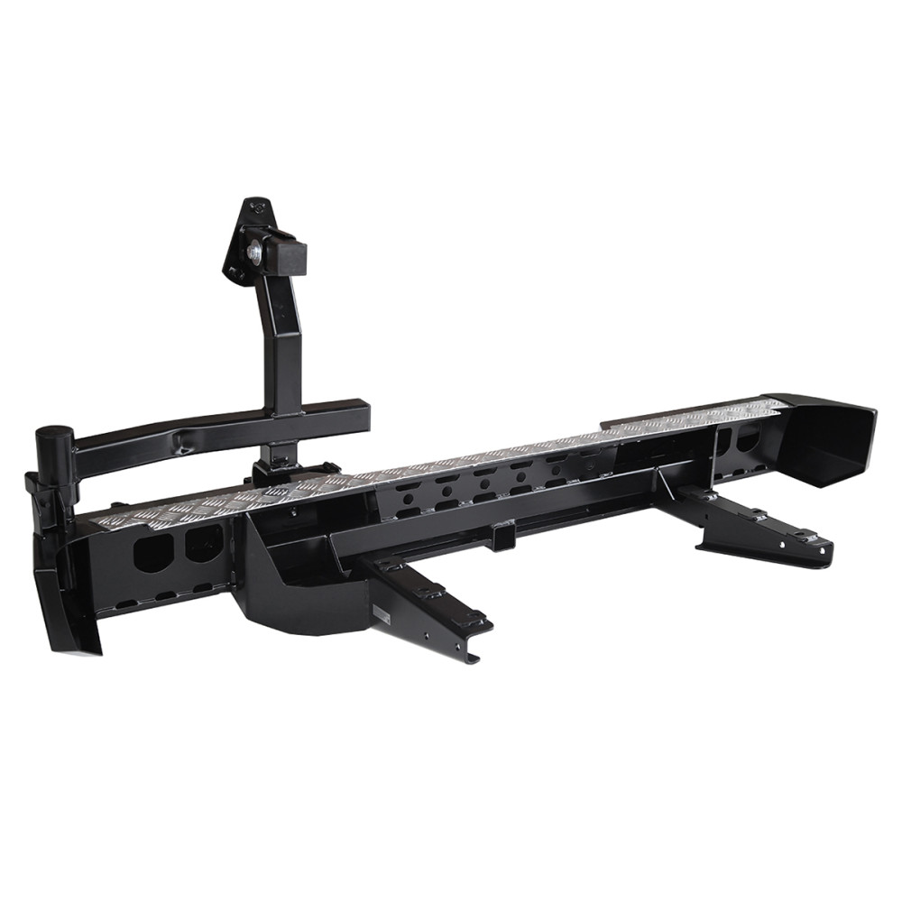 Задний силовой бампер РИФ надежно защитит кузов автомобиля на бездорожье или в городе в случае непредвиденных инцидентов. Бампер оборудован упорами под хай джек и буксирными проушинами для работы с рывковой или буксировочной стропой.