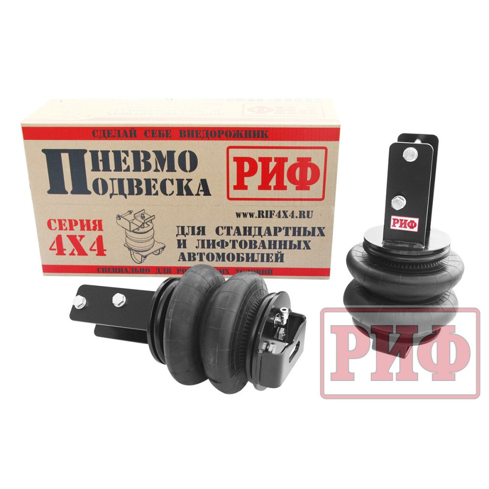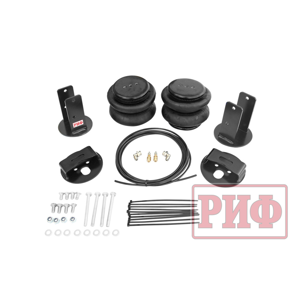 Комплект пневмоподвески РИФ устанавливается в дополнение к штатной подвеске автомобиля и позволяет снизить нагрузку на рессоры и позволяет использовать полную грузоподъёмность автомобиля без изменения геометрической проходимости