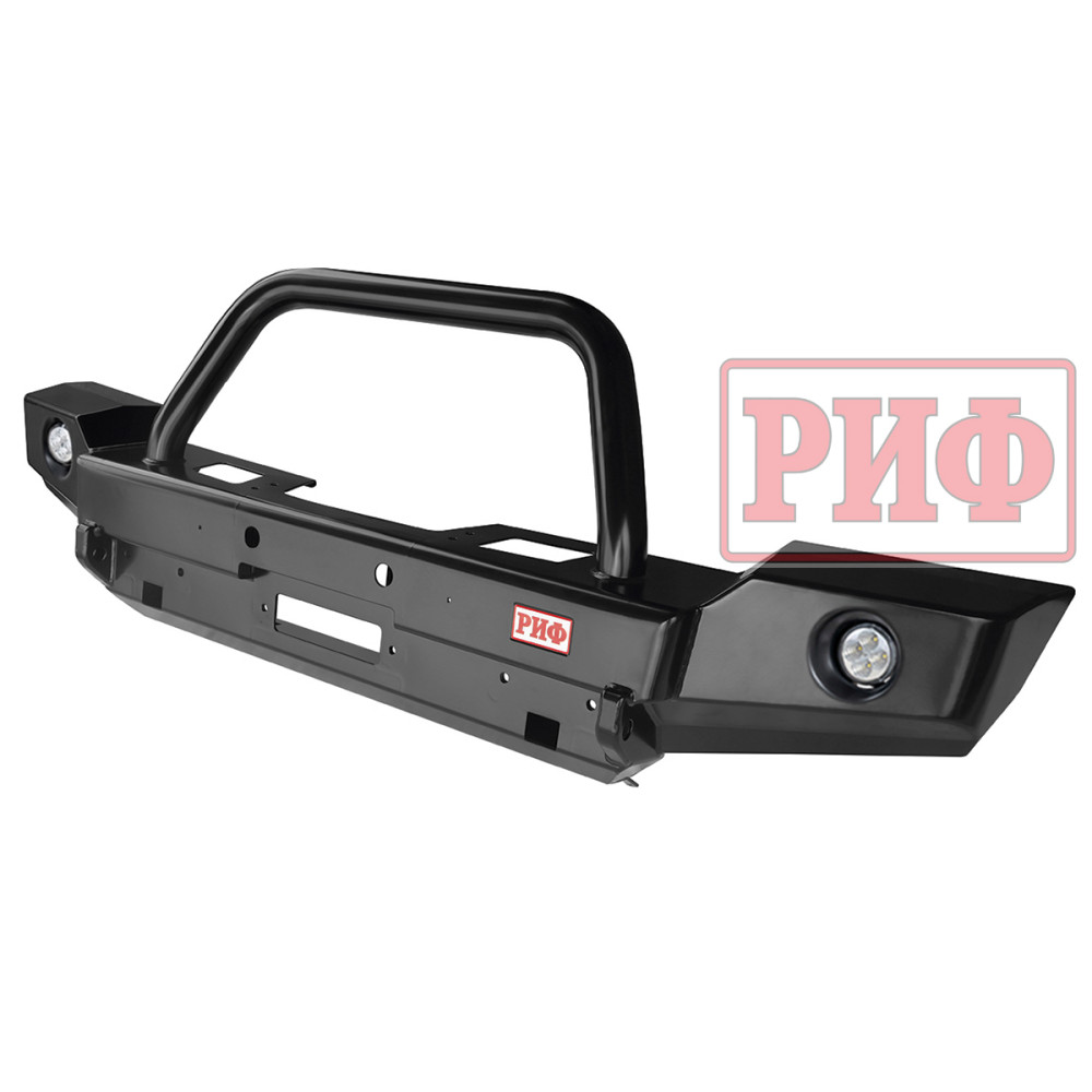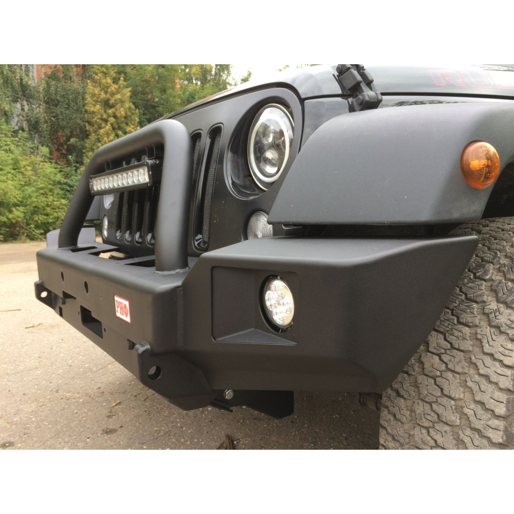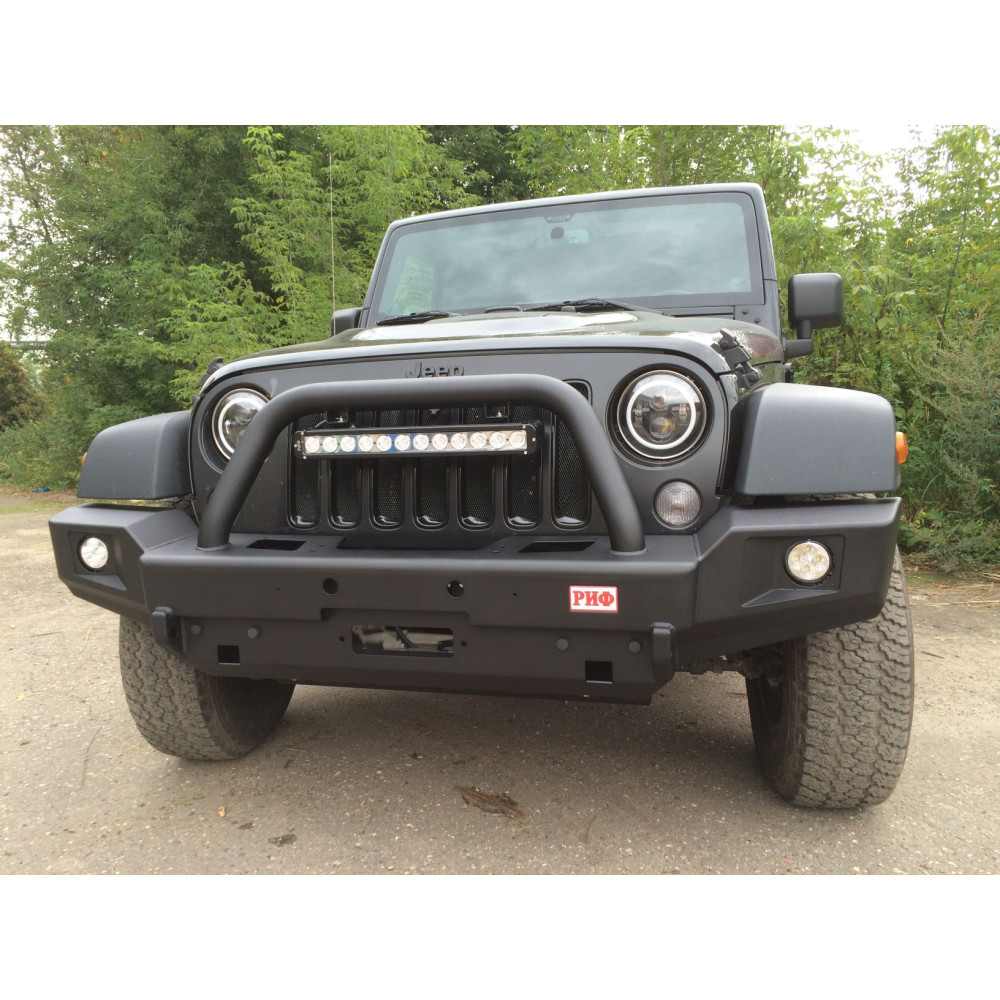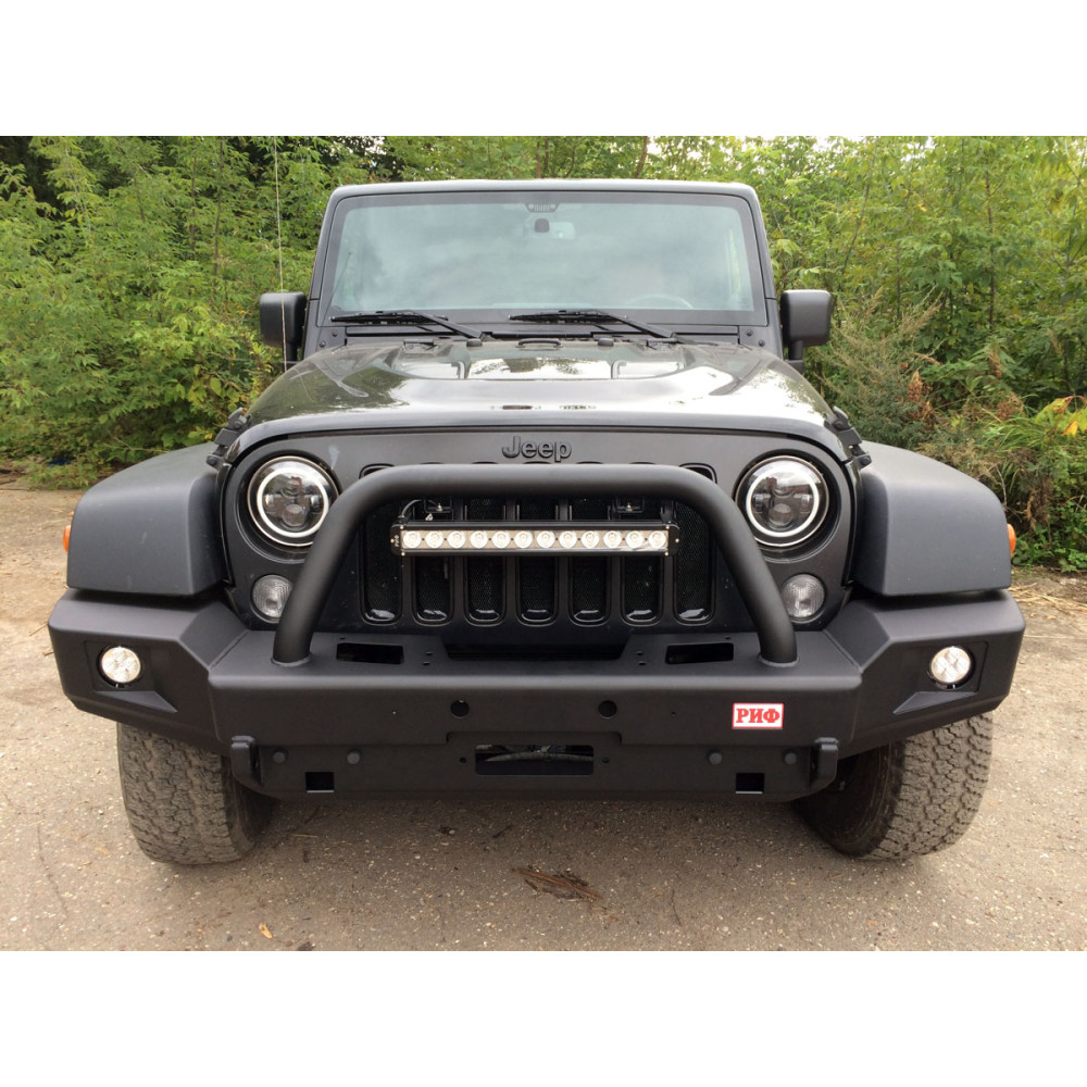 Бампер РИФ силовой передний Jeep Wrangler JK 2007-2018 с доп. фарами и центральной защитной дугой