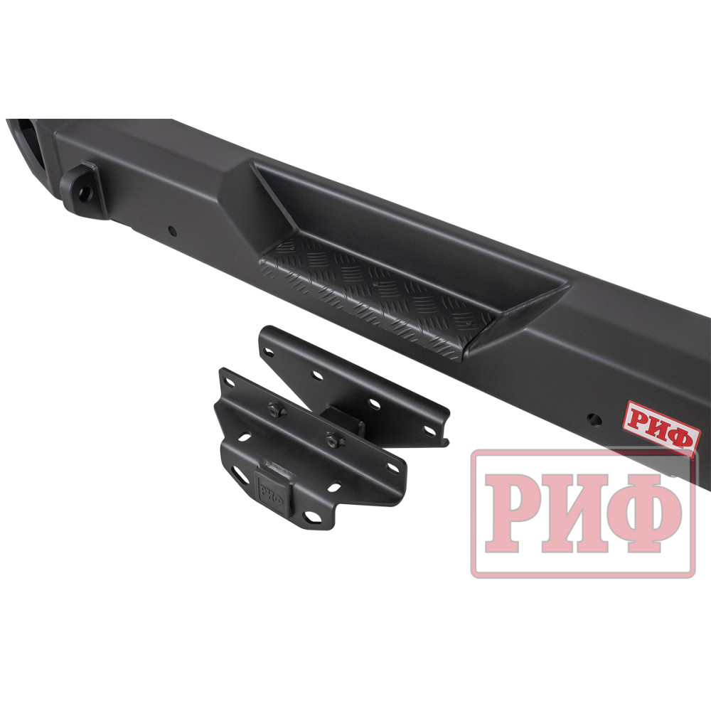 Дизайн бампера выполнен в фирменном стиле JEEP и органично впишется в его общий стилистический облик. Мощная силовая конструкция, присущая всем изделиям РИФ, надежно защитит кузов внедорожника на бездорожье или в городе в случае непредвиденных инцидентов. Бампер оборудован упорами под хай джек и буксирными проушинами для работы с рывковой или буксировочной стропой.