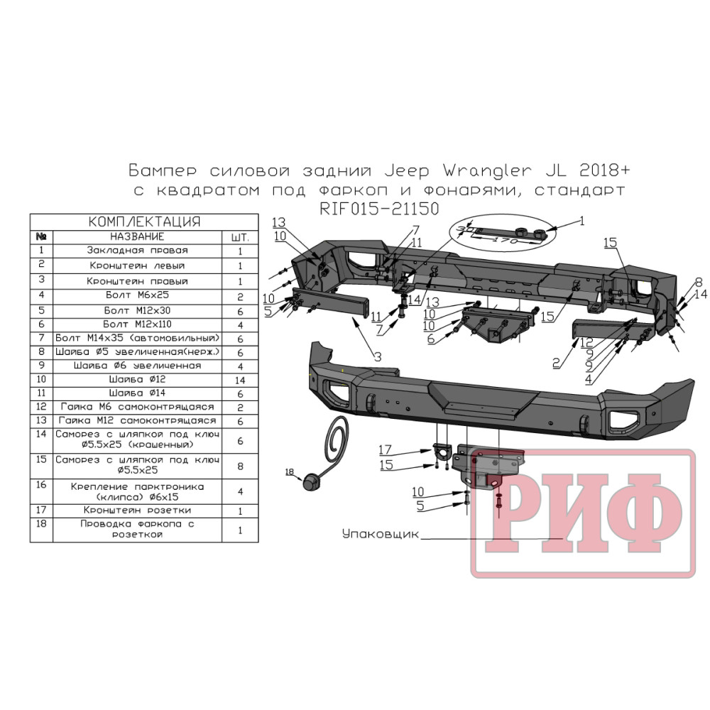 Обзор и пошаговая установка заднего бампера РИФ для Jeep Wrangler JL 2018+