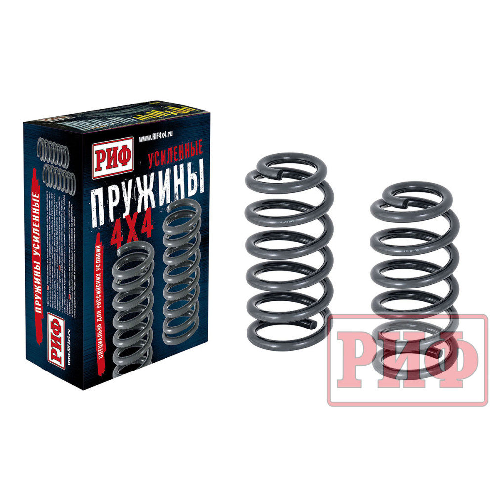 Пружины РИФ изготовлены из высококачественной конструкционной стали и предназначены специально для подготовки внедорожника к тяжелым условиям эксплуатации. Они позволяют «отлифтовать» внедорожник и увеличить его грузоподъемность, компенсировав при этом вес установленного дополнительного оборудования – силовых бамперов, багажника, лебедки.