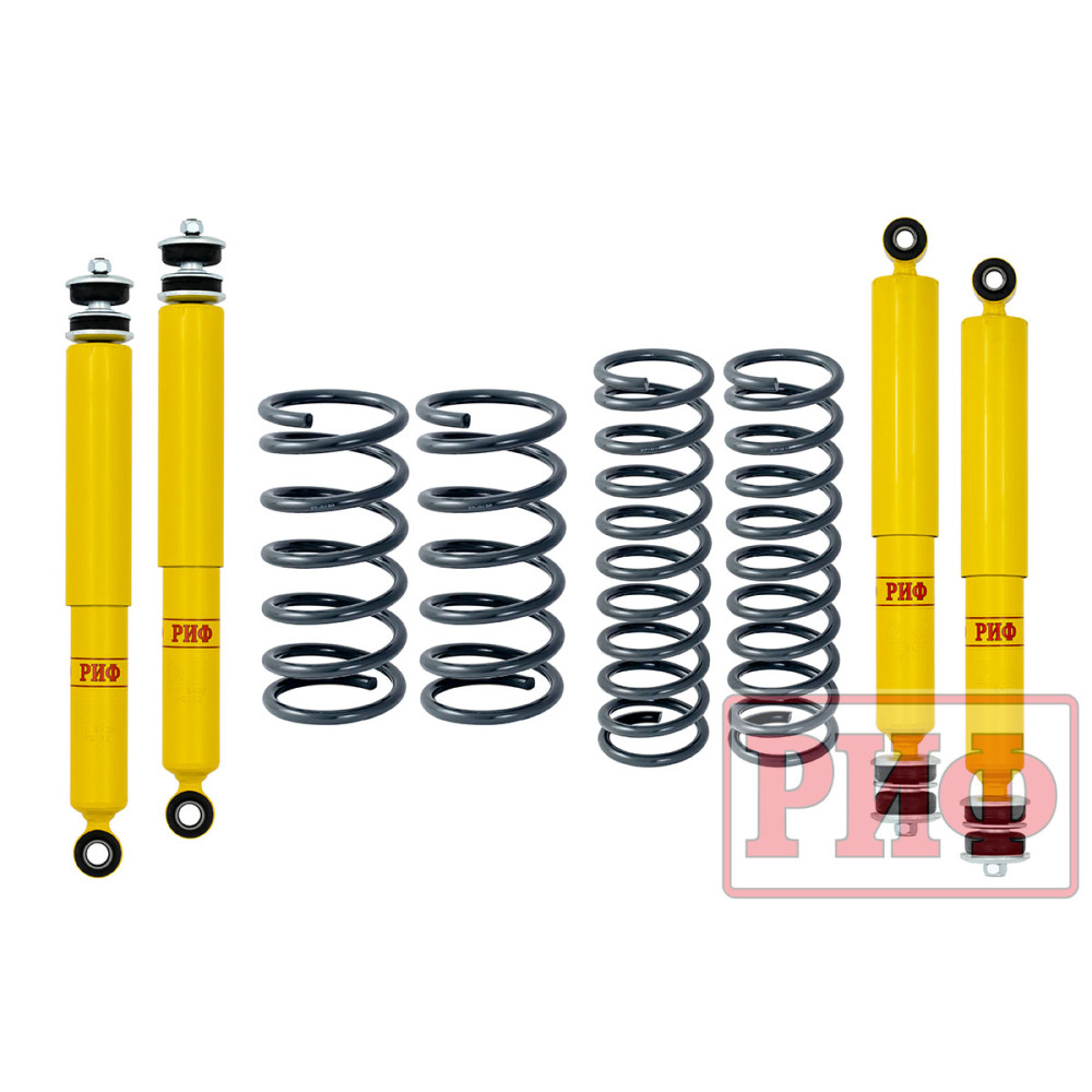 Все компоненты лифт-комплектов РИФ разработаны специально для эксплуатации внедорожника в тяжелых условиях на различных дорожных покрытиях. Амортизаторы с технологией R-Air и пружины РИФ не только компенсируют вес установленного на внедорожнике дополнительного оборудования (бамперов, порогов, дополнительных топливных баков, лебедок и прочего), но также существенно повышают грузоподъемность автомобиля.