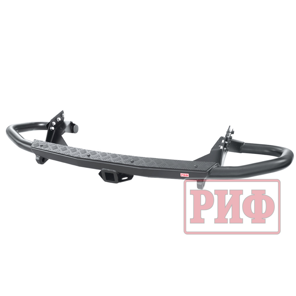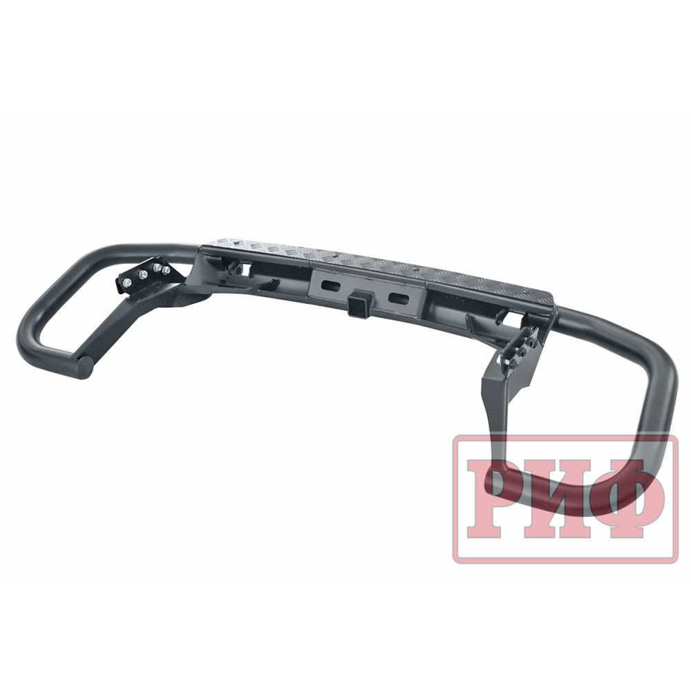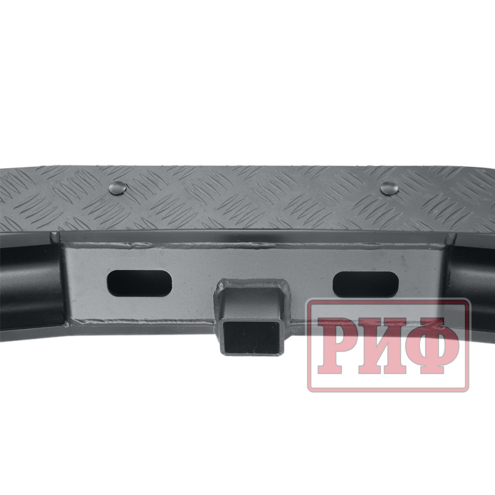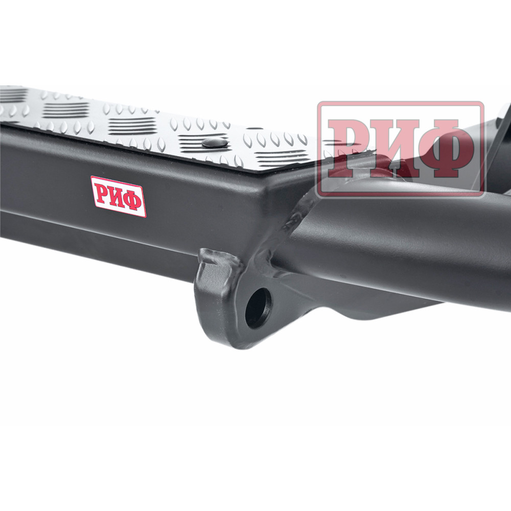 Задний силовой бампер РИФ надежно защитит кузов автомобиля на бездорожье или в городе в случае непредвиденных инцидентов. Бампер оборудован упорами под хай джек и буксирными проушинами для работы с рывковой или буксировочной стропой.