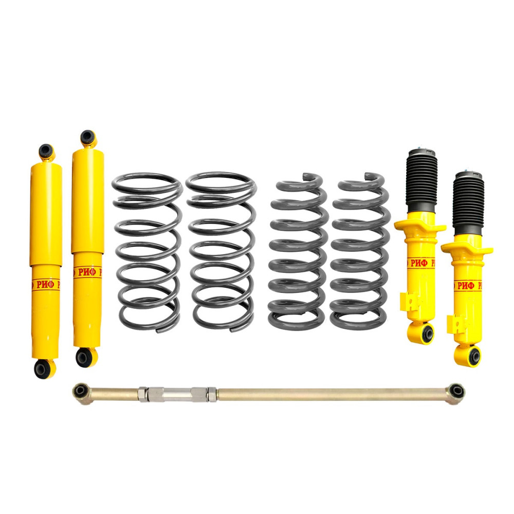 Все компоненты лифт-комплектов РИФ разработаны специально для эксплуатации внедорожника в тяжелых условиях на различных дорожных покрытиях. Амортизаторы с технологией R-Air и пружины РИФ не только компенсируют вес установленного на внедорожнике дополнительного оборудования (бамперов, порогов, дополнительных топливных баков, лебедок и прочего), но также существенно повышают грузоподъемность автомобиля.