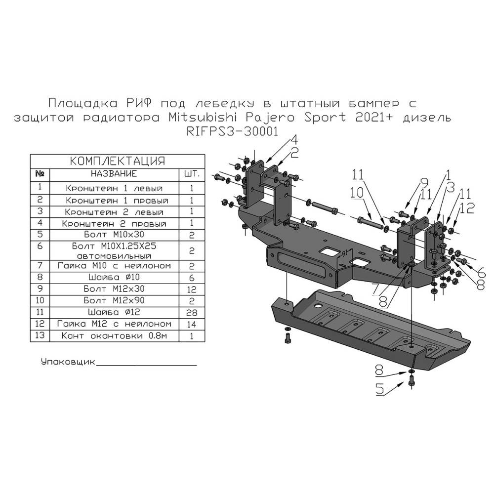 Площадка РИФ под лебёдку c защитой радиатора в штатный бампер Mitsubishi Pajero Sport 2021+ дизель 0 32350р.