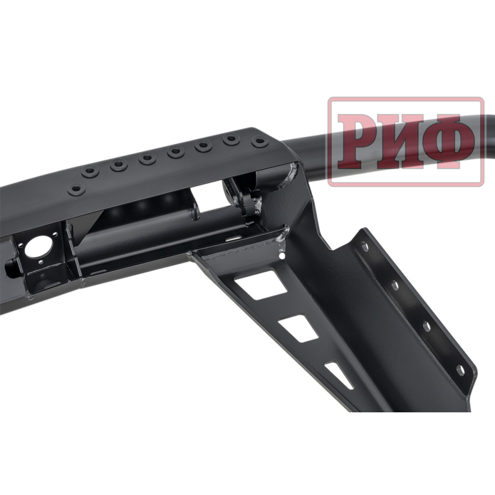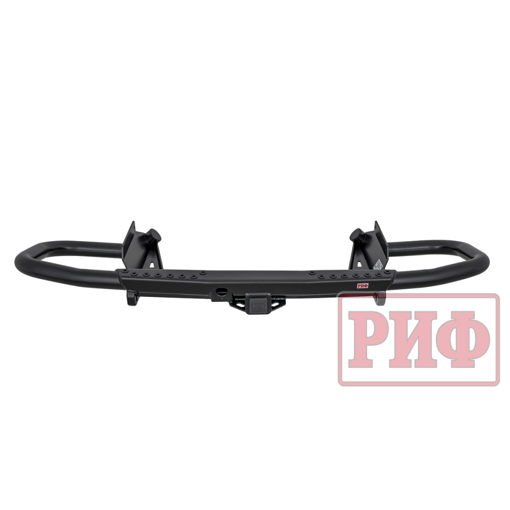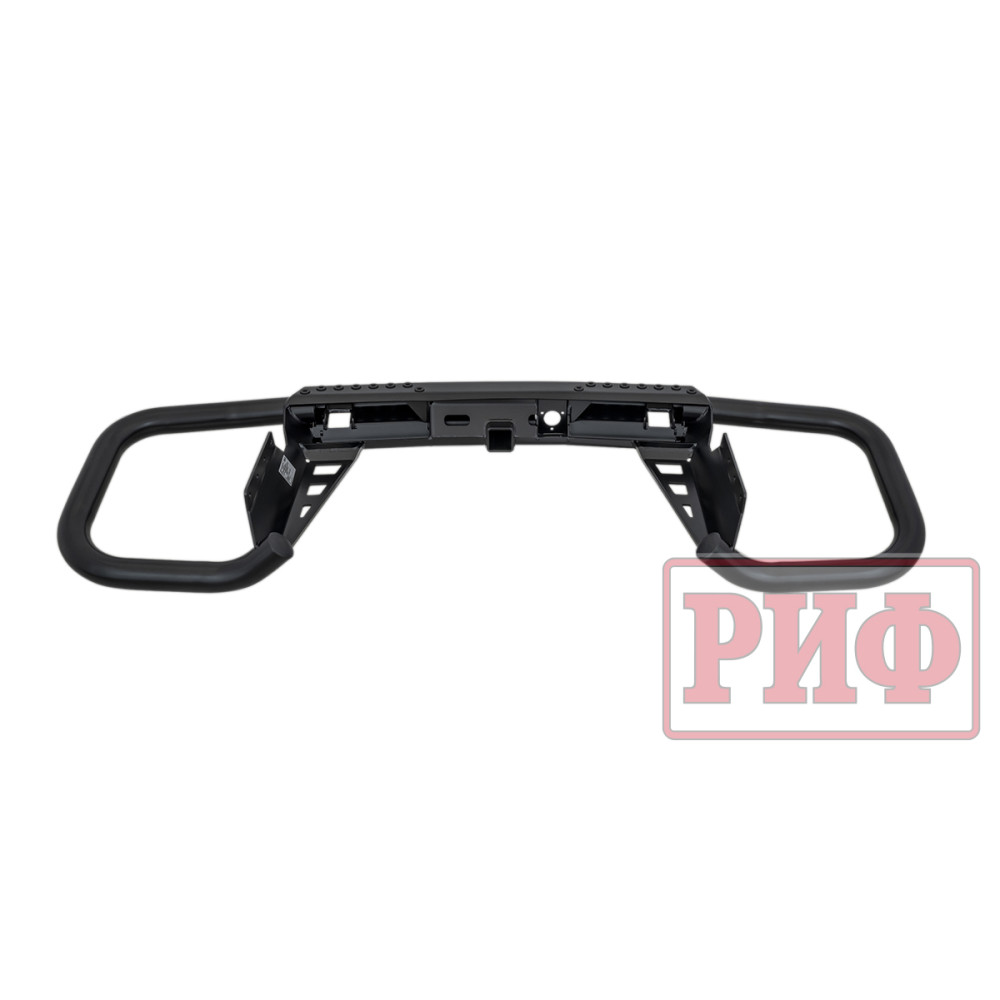 Задний силовой бампер РИФ надежно защитит кузов автомобиля на бездорожье или в городе в случае непредвиденных инцидентов. Бампер оборудован упорами под хай джек и буксирными проушинами для работы с рывковой или буксировочной стропой.