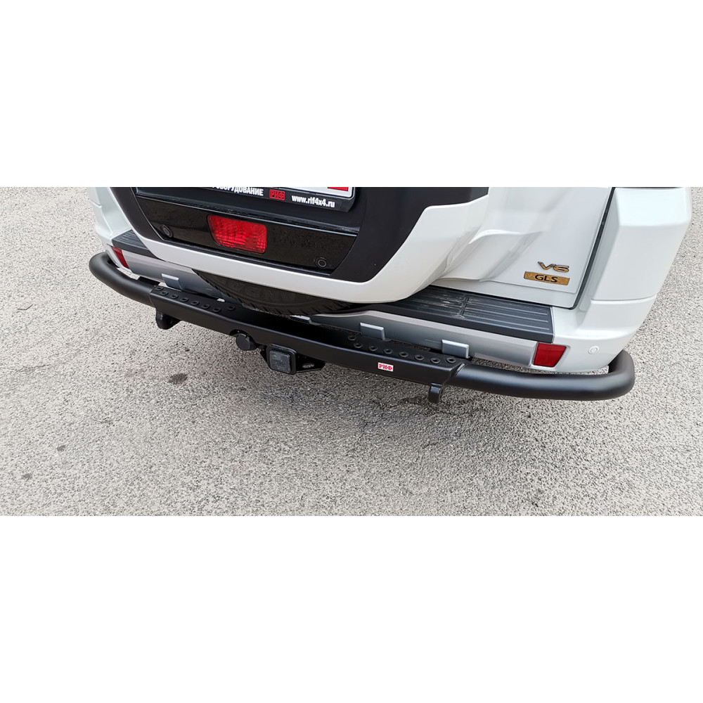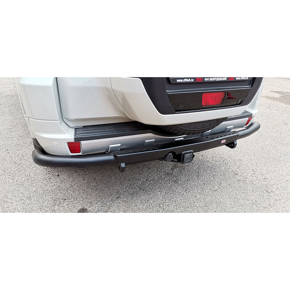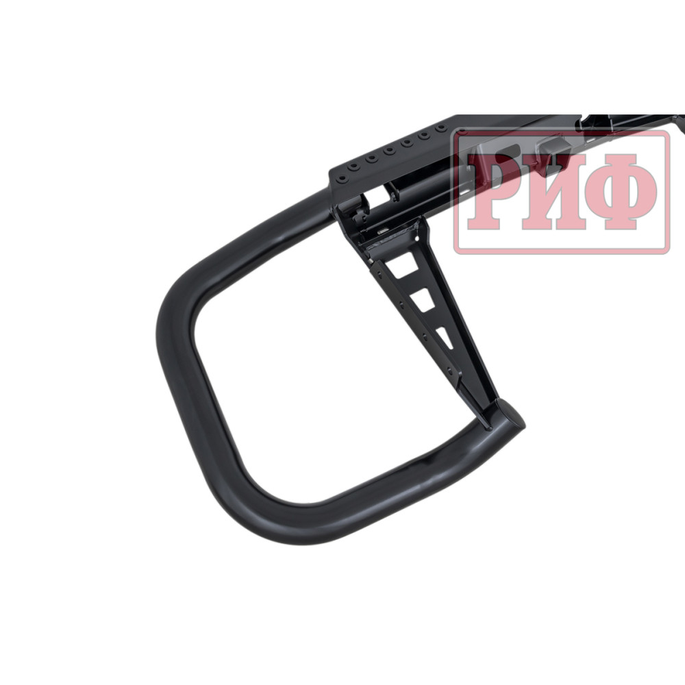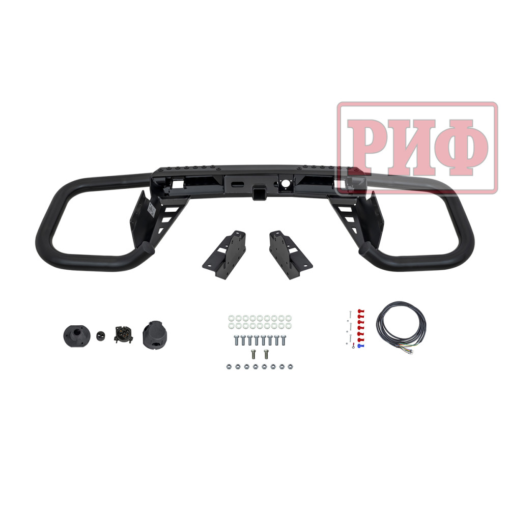 Задний силовой бампер РИФ надежно защитит кузов автомобиля на бездорожье или в городе в случае непредвиденных инцидентов. Бампер оборудован упорами под хай джек и буксирными проушинами для работы с рывковой или буксировочной стропой.