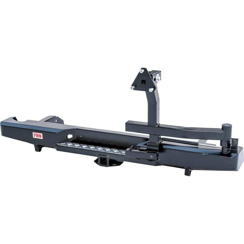 Задний силовой бампер РИФ надежно защитит кузов автомобиля на бездорожье или в городе в случае непредвиденных инцидентов. Бампер оборудован упорами под хай джек и буксирными проушинами для работы с рывковой или буксировочной стропой.