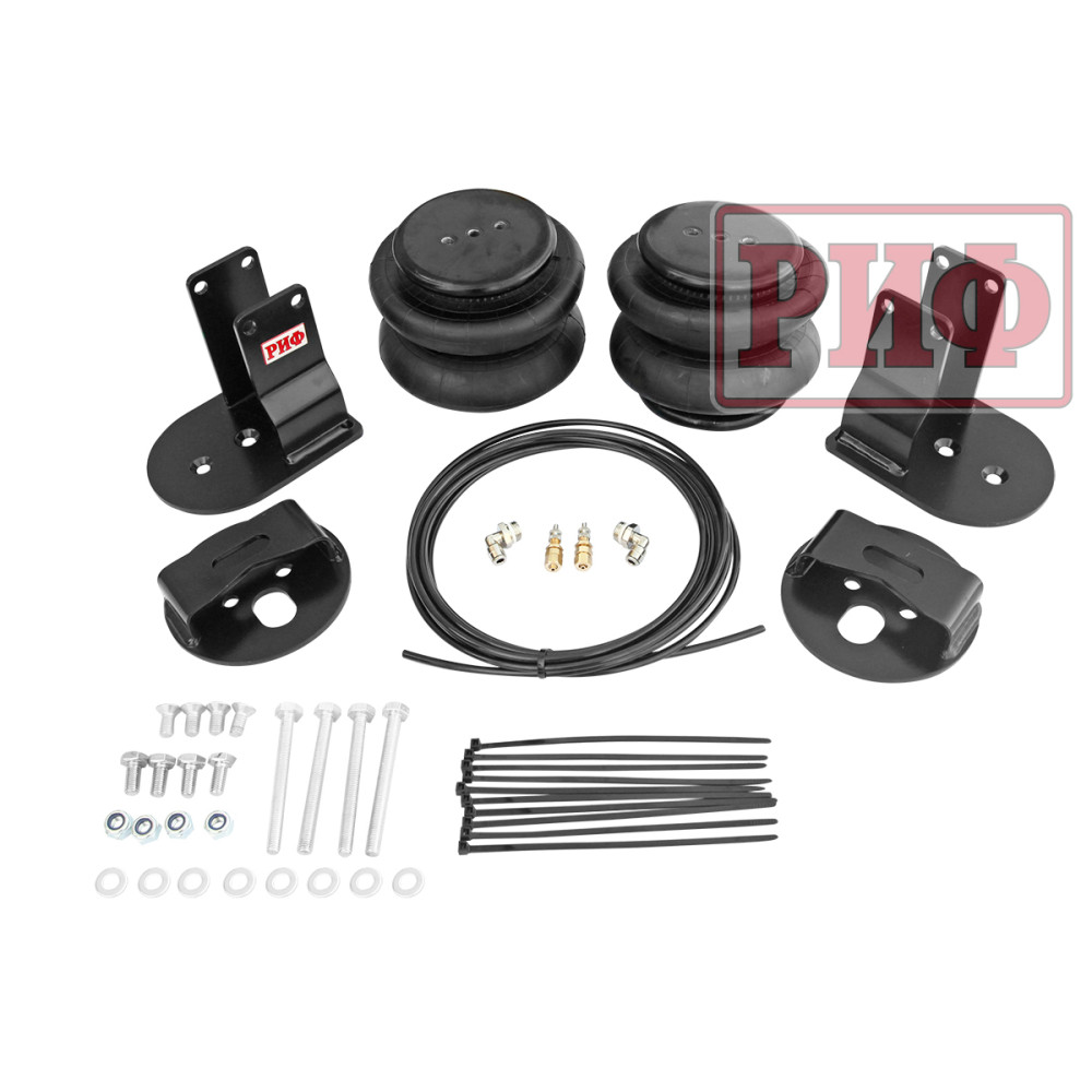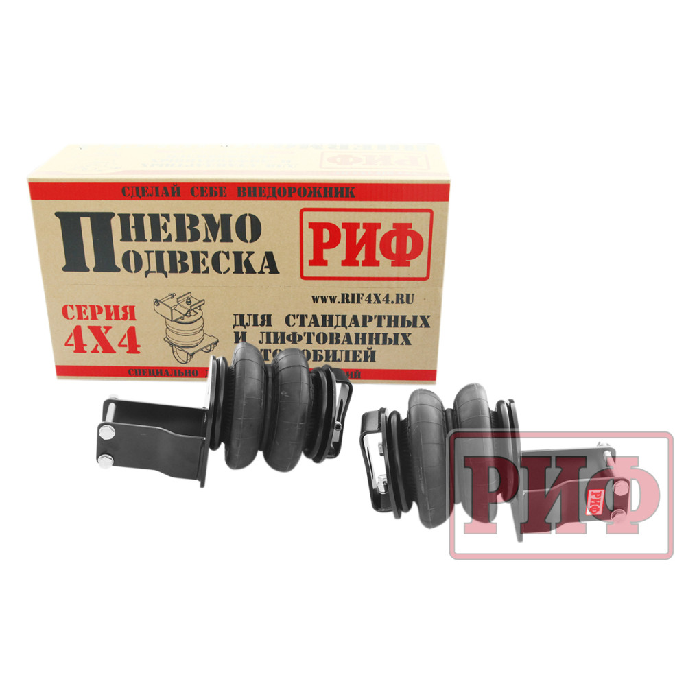 Комплект пневмоподвески РИФ устанавливается в дополнение к штатной подвеске автомобиля и позволяет снизить нагрузку на рессоры и позволяет использовать полную грузоподъёмность автомобиля без изменения геометрической проходимости