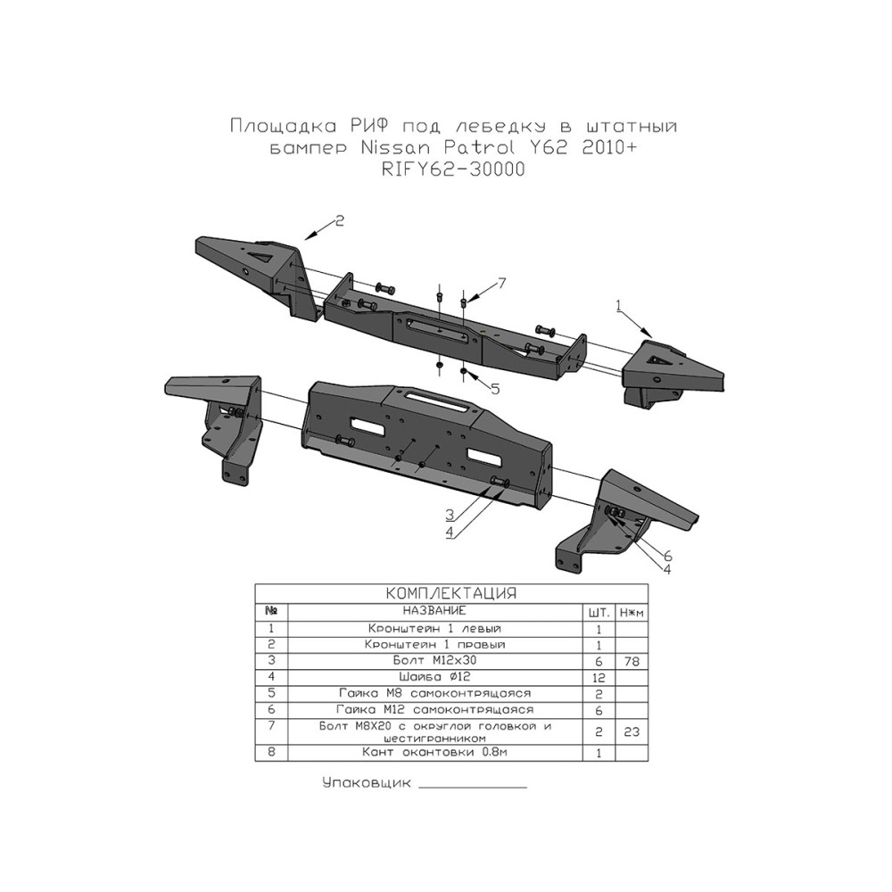 Площадка РИФ под лебёдку в штатный бампер Nissan Patrol Y62 2010+