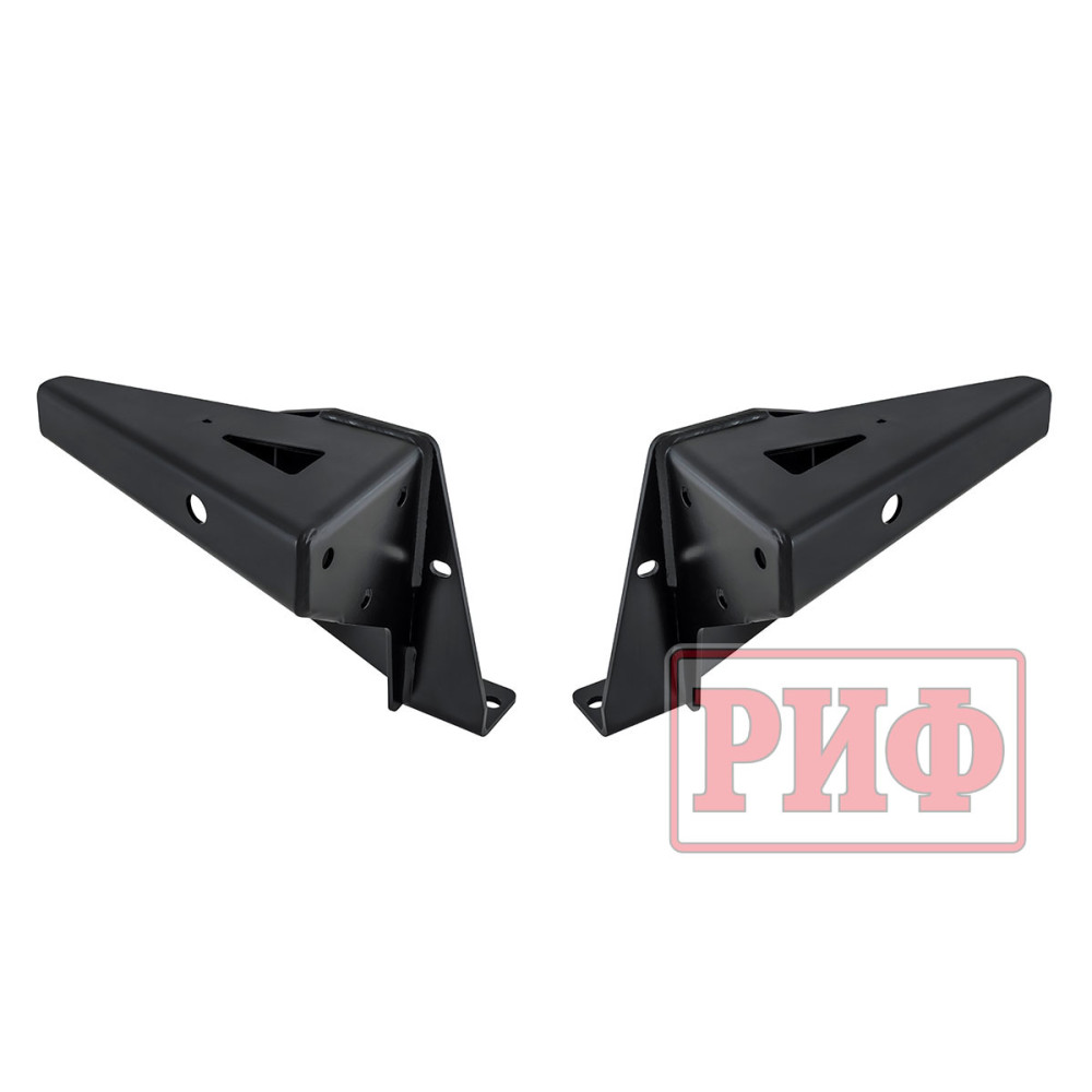 Площадка устанавливается на раму и не требует никаких вмешательств в конструкцию автомобиля, кроме вырезания в сетке штатного бампере аккуратного отверстия под клюз или ролики. Как и весь силовой обвес РИФ, площадка отличается прочностью конструкции и высоким качеством материалов и изготовления, аккуратностью сгибов, сварных швов и окраски. Антикоррозийное порошковое покрытие надёжно защитит площадку от вредного воздействия влаги и реагентов на радость владельцу.