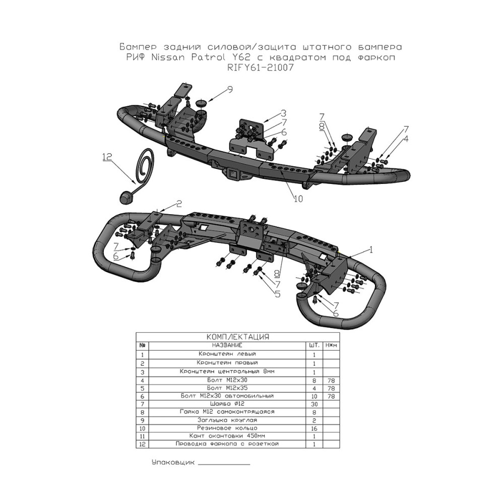 • Бампер задний силовой/защита штатного бампера РИФ Nissan Patrol Y62 c квадратом под фаркоп