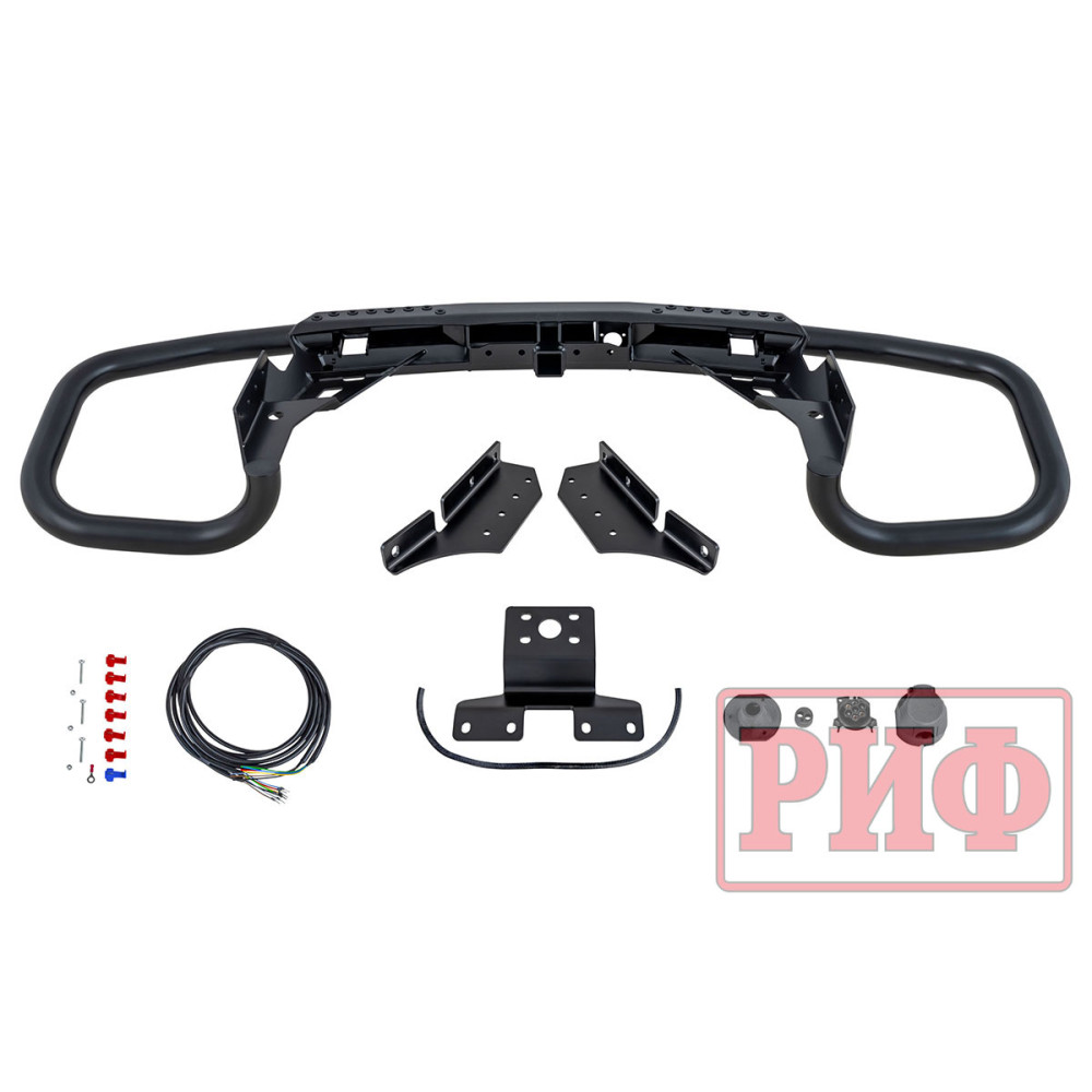 Задний силовой бампер РИФ надежно защитит кузов автомобиля на бездорожье или в городе в случае непредвиденных инцидентов. Бампер оборудован упорами под хай джек и буксирными проушинами для работы с рывковой или буксировочной стропой.
