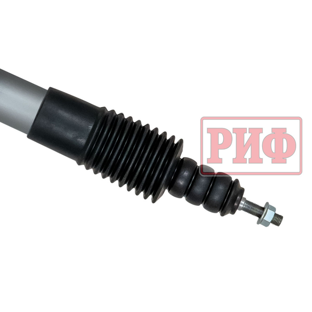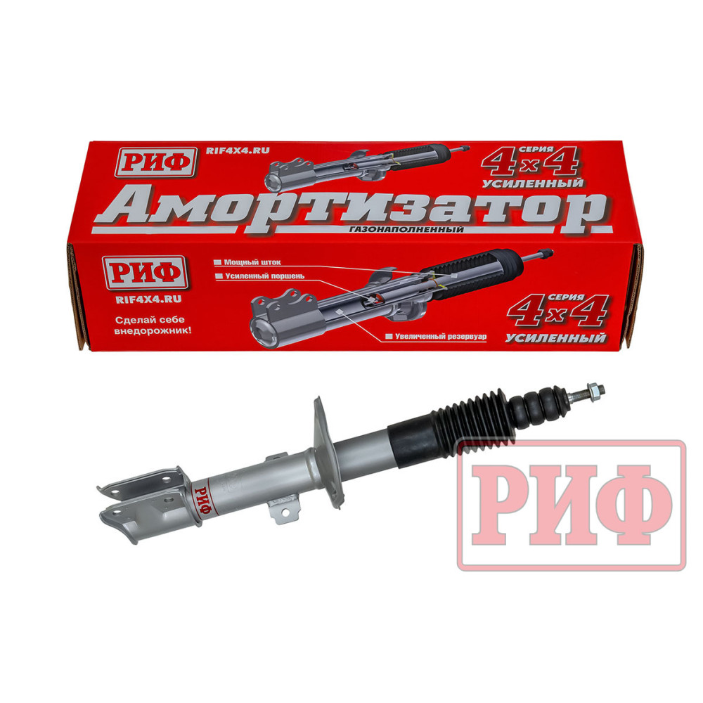 Газ, находящийся под давлением в компенсационной камере наружной трубы, позволяет повысить устойчивость амортизатора к высоким нагрузкам. Масло под давлением газа менее подвержено эффекту кавитации, а значит и меньше вспенивается, в отличие от обычного гидравлического амортизатора. Также, благодаря увеличенному масляному резервуару с большим количеством масла, усиленному штоку и поршню, амортизаторы "РИФ" обладают длительным рабочим ресурсом и обеспечивают великолепную стабильность рабочих характеристик при длительной езде по дорогам общего пользования, отличную курсовую устойчивость, хорошую артикуляцию подвески и приятную плавность хода на бездорожье.