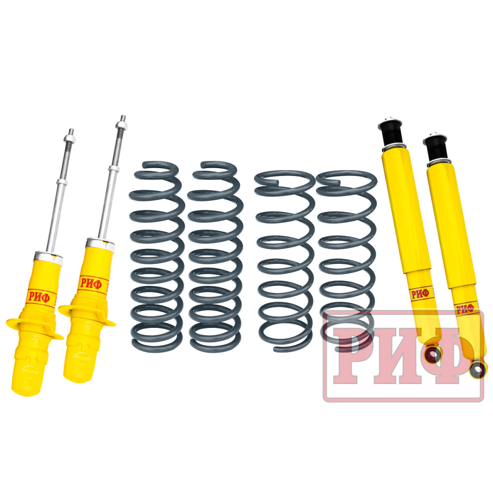 Все компоненты лифт-комплектов РИФ разработаны специально для эксплуатации внедорожника в тяжелых условиях на различных дорожных покрытиях. Амортизаторы с технологией R-AIR и пружины РИФ не только компенсируют вес установленного на внедорожнике дополнительного оборудования (бамперов, порогов, дополнительных топливных баков, лебедок и прочего), но также существенно повышают грузоподъемность автомобиля.