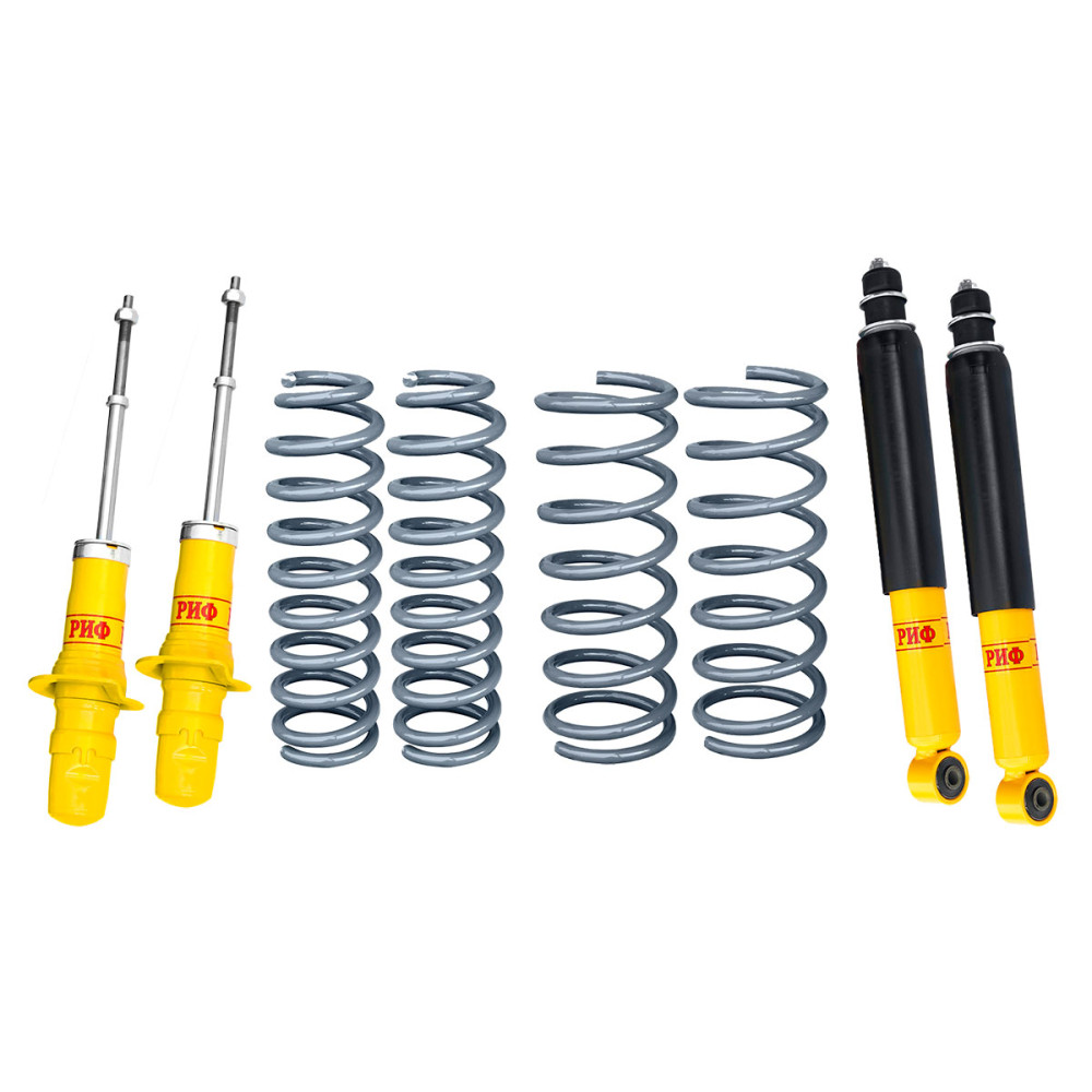 Все компоненты лифт-комплектов РИФ разработаны специально для эксплуатации внедорожника в тяжелых условиях на различных дорожных покрытиях. Амортизаторы с технологией R-AIR и пружины РИФ не только компенсируют вес установленного на внедорожнике дополнительного оборудования (бамперов, порогов, дополнительных топливных баков, лебедок и прочего), но также существенно повышают грузоподъемность автомобиля.