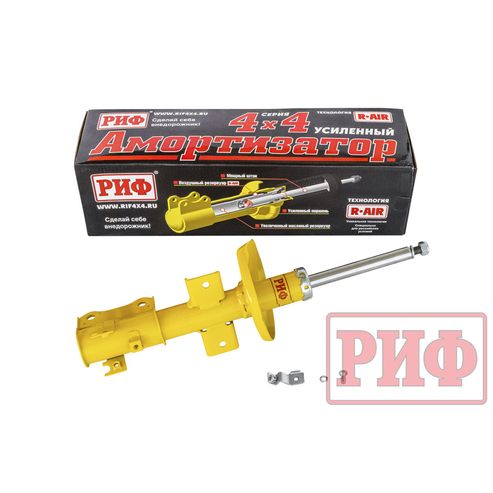 Усиленные амортизаторы РИФ изготовлены по уникальной технологии R-AIR, позволяющей повысить устойчивость гидравлического амортизатора к высоким нагрузкам. Внутри амортизатора находится герметичная камера из эластичной резины, заполненная воздухом. Благодаря технологии R-AIR масло не вспенивается и дольше не закипает при длительных непрерывных нагрузках в отличие от обычного гидравлического амортизатора или амортизатора с технологией Foam Cell, которую мы использовали ранее, где вспениванию препятствует просто прослойка из пористой резины. Технология R-AIR - это принципиально новое слово в производстве амортизаторов. Благодаря увеличенному масляному резервуару с большим количеством масла, усиленным штоку, поршню и технологии R-AIR, амортизаторы РИФ обладают длительным рабочим ресурсом и обеспечивают великолепную стабильность рабочих характеристик при длительной езде по разбитым проселочным дорогам, отличную курсовую устойчивость, хорошую артикуляцию подвески и приятную плавность хода на бездорожье.