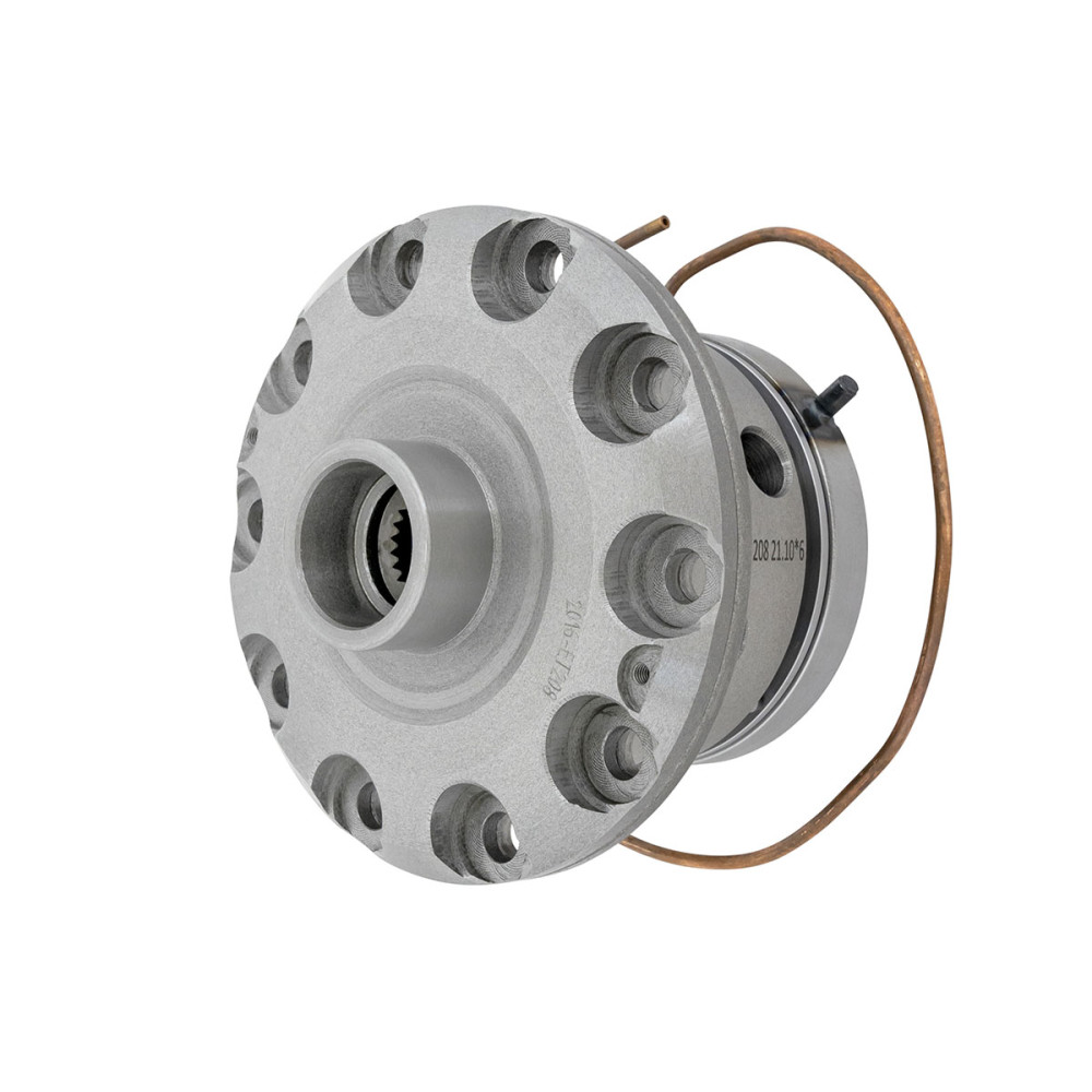 Пневматический механизм включения кардинально отличается от пневматических блокировок ARB, в которых воздух удерживается двумя резиновыми колечками трущимися по вращающемуся дифференциалу и имеющими свойство изнашиваться со временем. В данном механизме нет изнашивающихся колечек подверженных трению о вращающийся дифференциал, актуатор представляет из себя поршень, который при подаче воздуха механически задвигает штифты и блокирует сайдгиры с корпусом дифференциала сразу после включения.