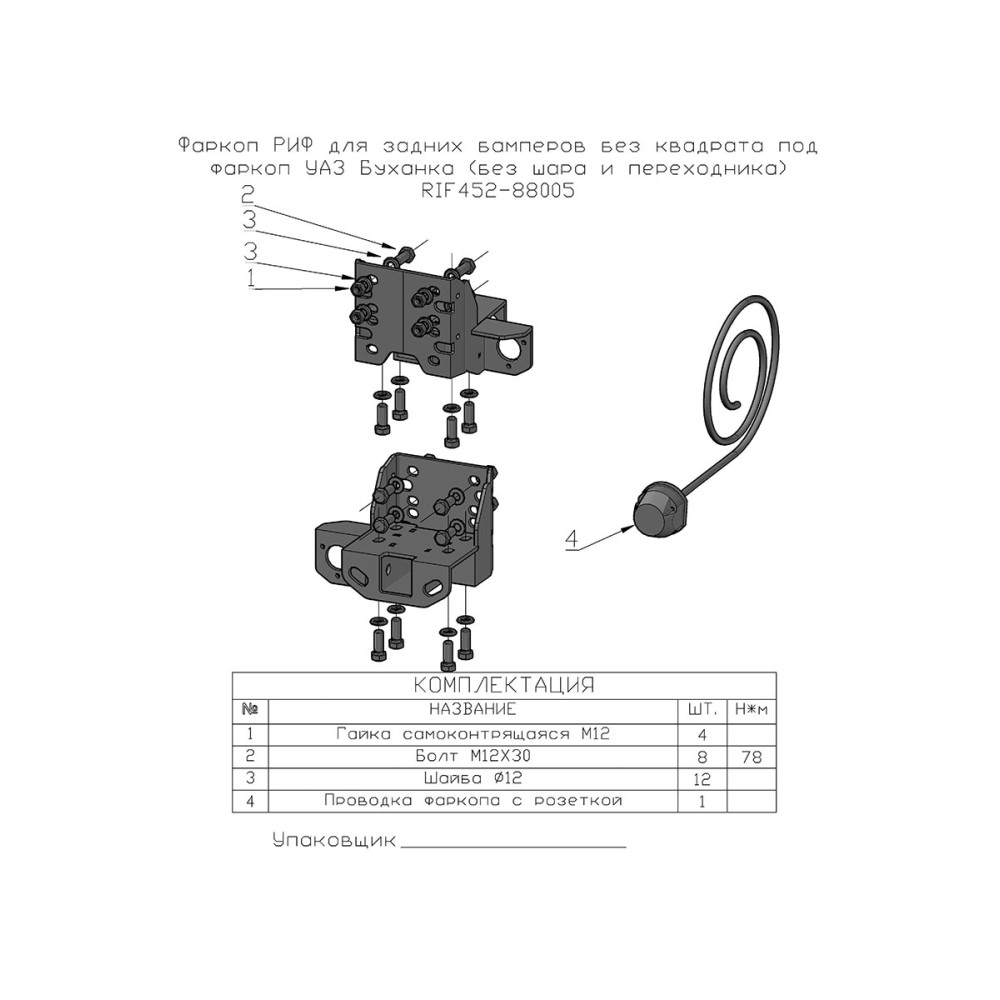 Фаркоп РИФ для задних бамперов РИФ нового образца для УАЗ Буханка (без шара и переходника)