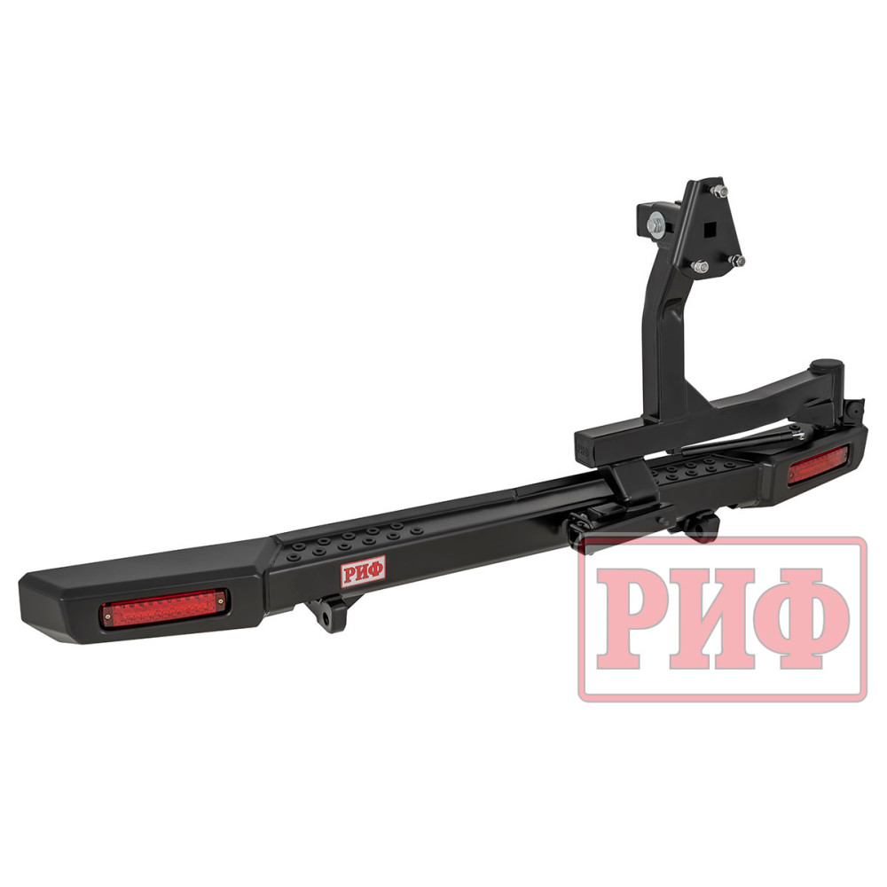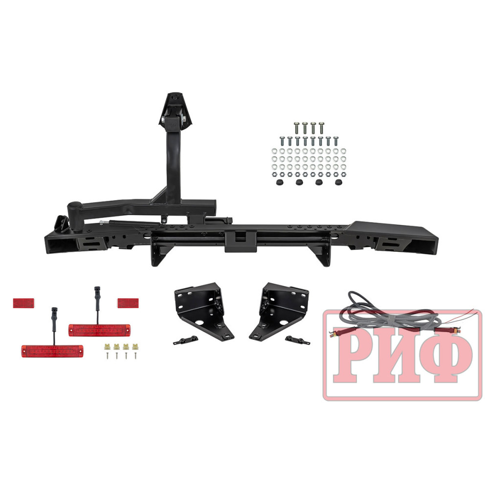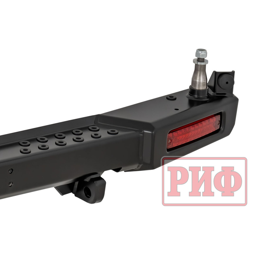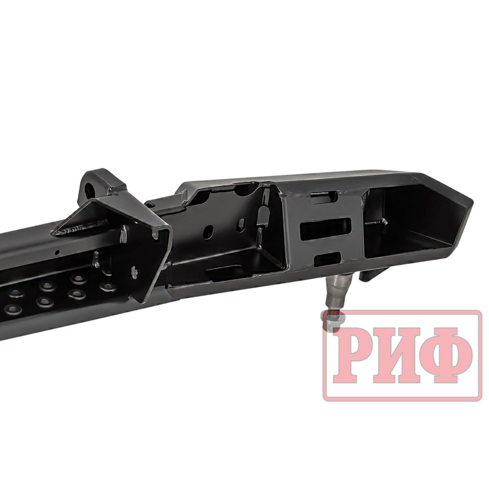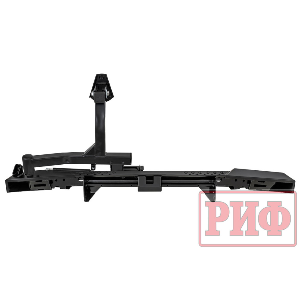 Задний силовой бампер РИФ надежно защитит кузов автомобиля на бездорожье или в городе в случае непредвиденных инцидентов. Бампер оборудован упорами под хай джек и буксирными проушинами для работы с рывковой или буксировочной стропой.