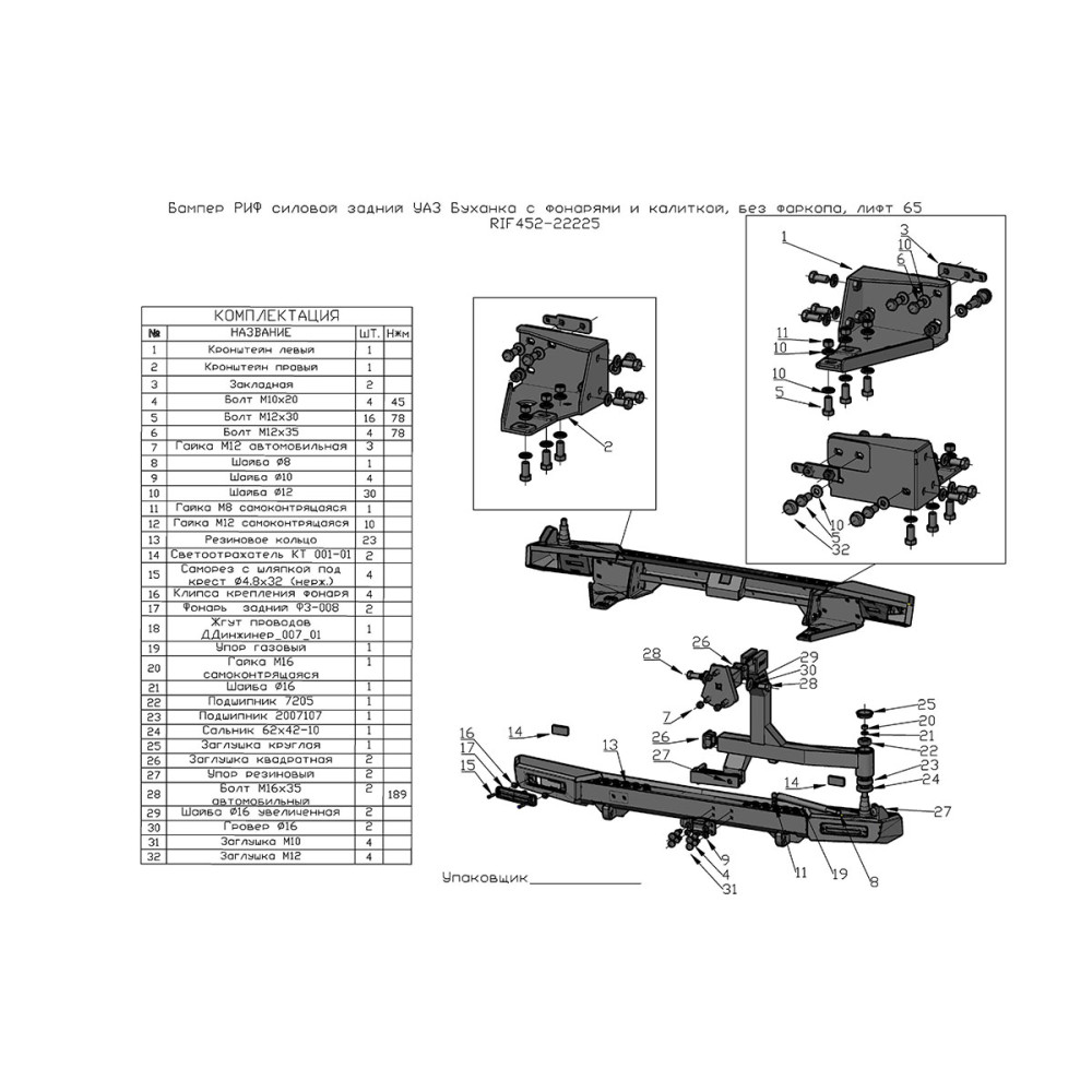 • Бампер РИФ силовой задний УАЗ Буханка с фонарями, калиткой, возможностью установки фаркопа, лифт 65 мм