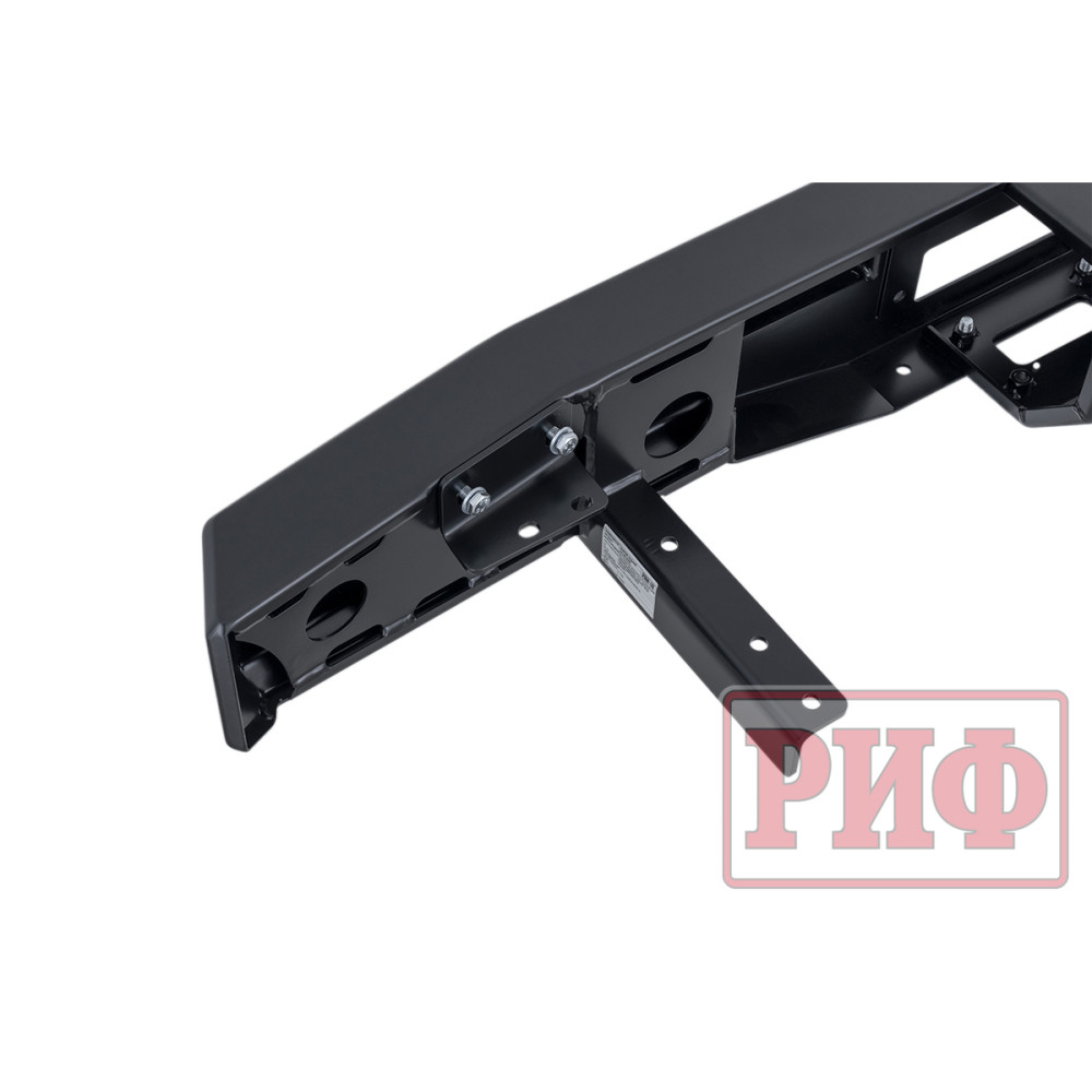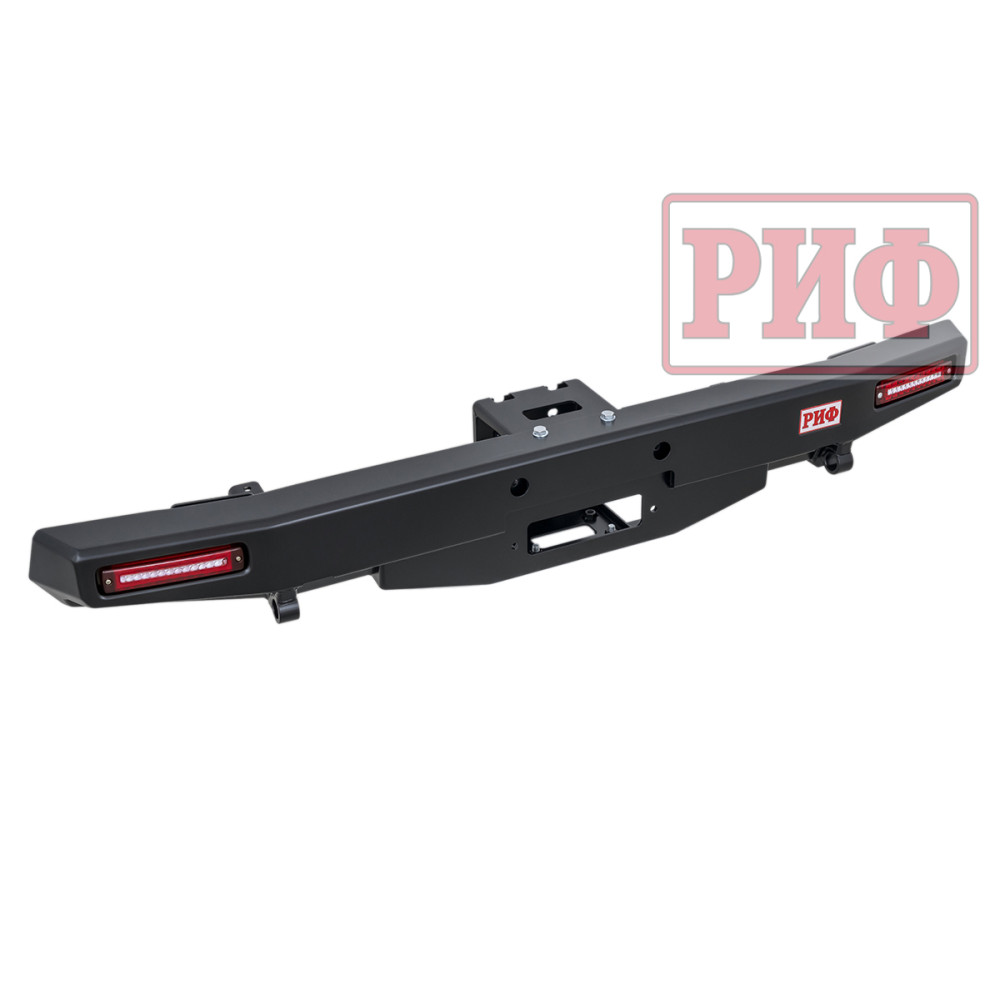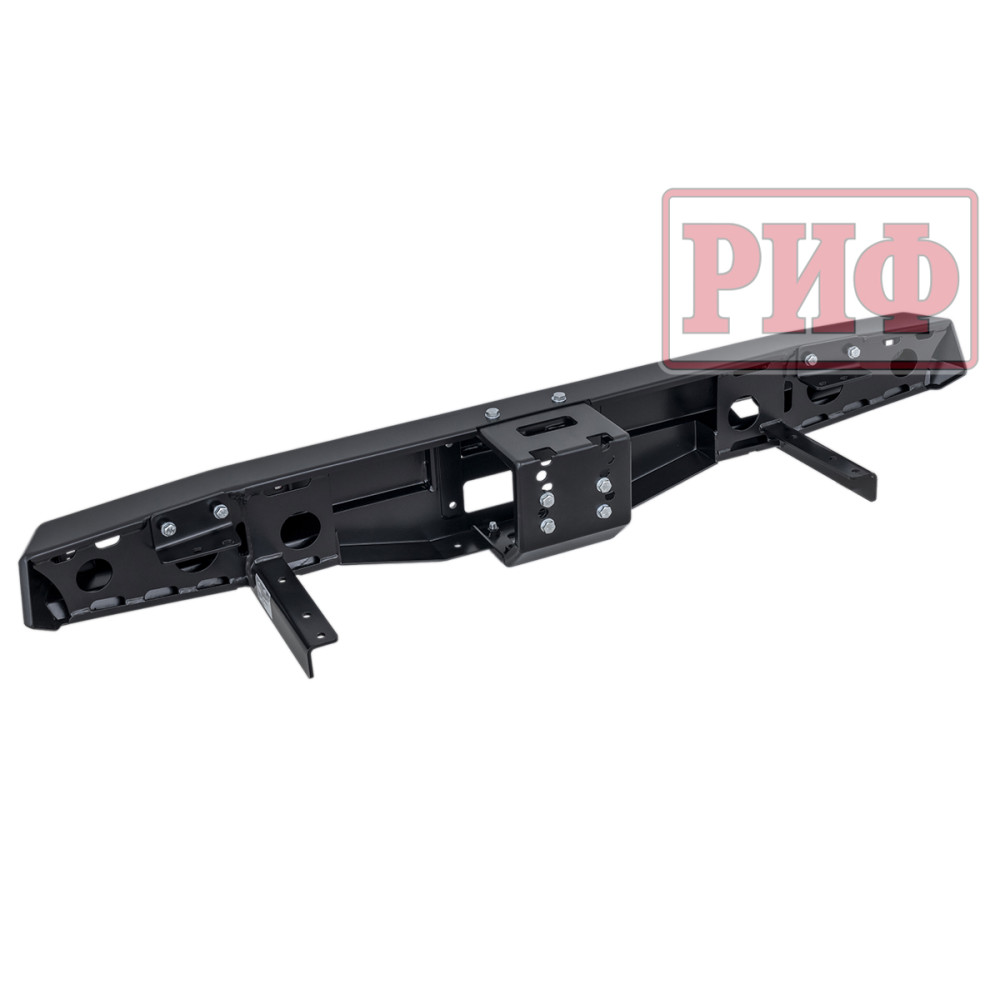 Задний силовой бампер РИФ надежно защитит кузов автомобиля на бездорожье или в городе в случае непредвиденных инцидентов. Бампер оборудован упорами под хай джек и буксирными проушинами для работы с рывковой или буксировочной стропой.