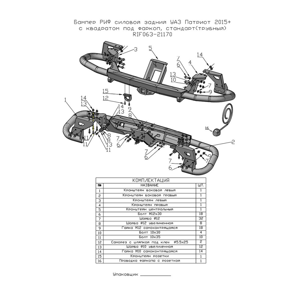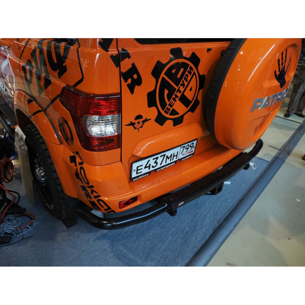 • Бампер задний силовой/защита штатного бампера РИФ УАЗ Патриот 2015+ с квадратом под фаркоп, стандарт
