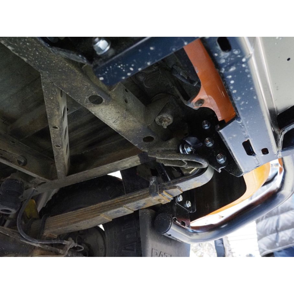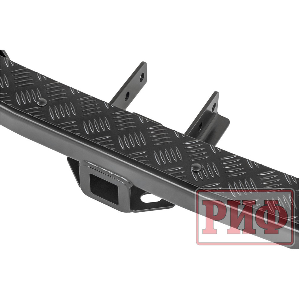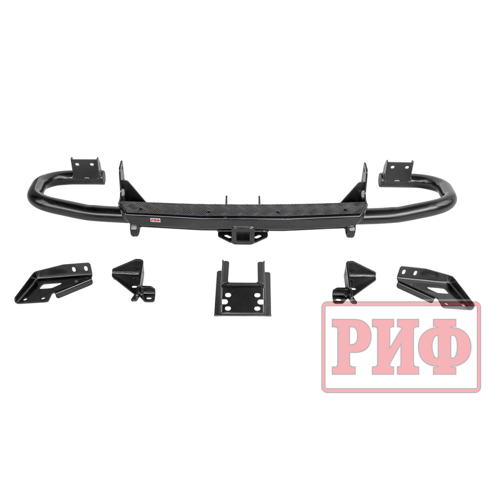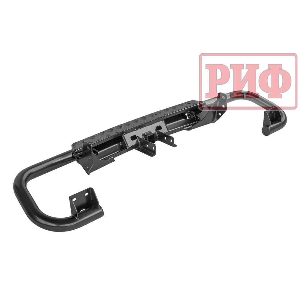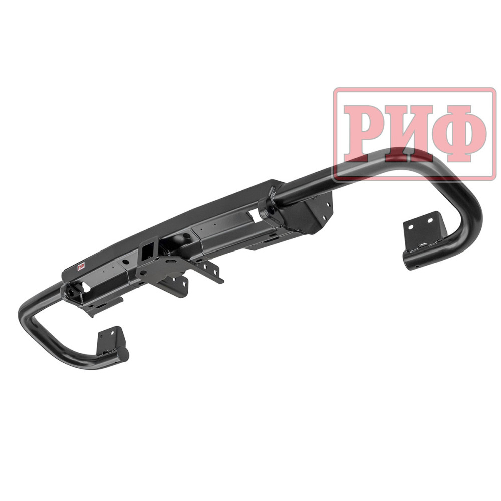 Задний силовой бампер РИФ надежно защитит кузов автомобиля на бездорожье или в городе в случае непредвиденных инцидентов. Бампер оборудован упорами под хай джек и буксирными проушинами для работы с рывковой или буксировочной стропой.