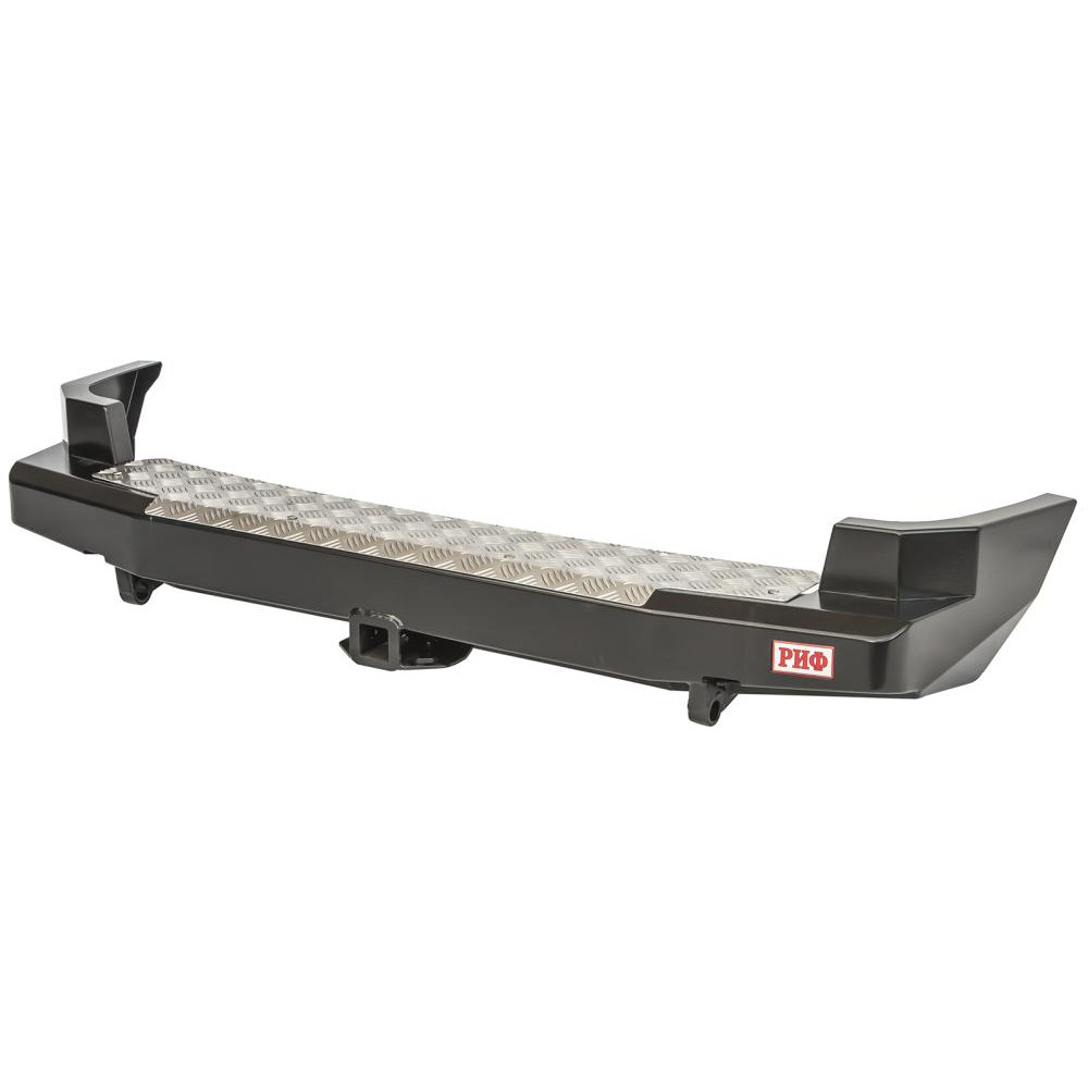 Задний силовой бампер РИФ надежно защитит кузов автомобиля на бездорожье или в городе в случае непредвиденных инцидентов. Бампер оборудован упорами под хай джек и буксирными проушинами для работы с рывковой или буксировочной стропой.