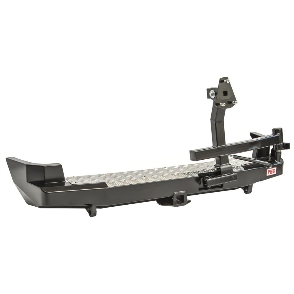 Задний силовой бампер РИФ надежно защитит кузов автомобиля на бездорожье или в городе в случае непредвиденных инцидентов. Бампер оборудован упорами под хай джек и буксирными проушинами для работы с рывковой или буксировочной стропой.