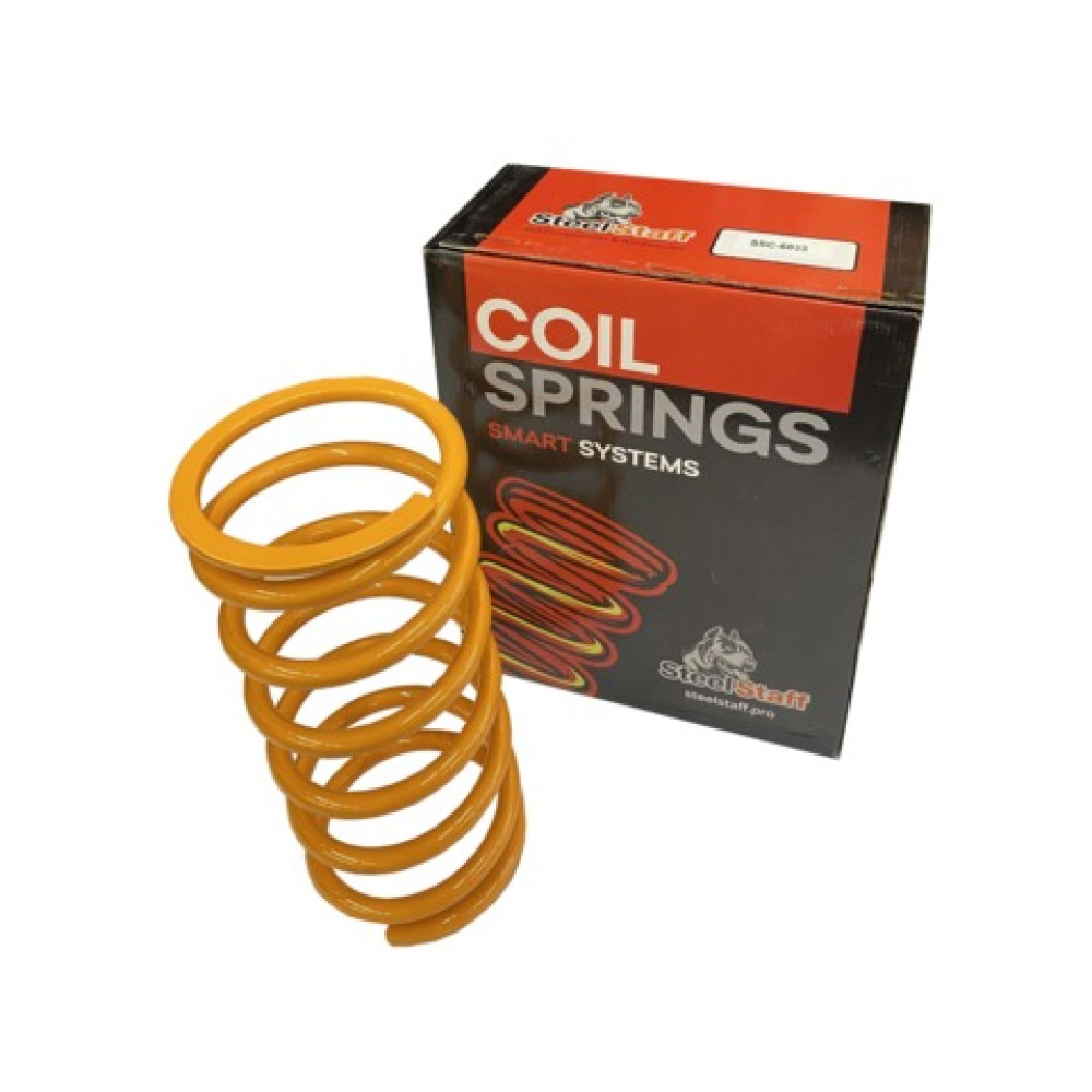Прогрессивная навивка спиральных пружин обеспечивает оптимальную жесткость подвески Steel Staff при малых загрузках и возрастание жесткости с увеличением загрузки автомобиля, при крене в повороте или экстремальном торможении, что исключает пробои подвески и сохраняет комфорт движения.