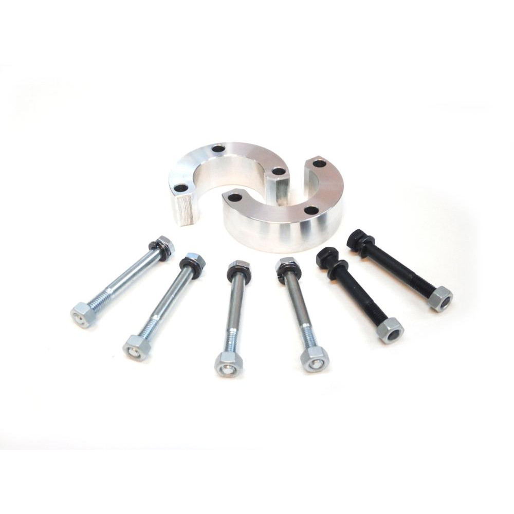 Проставки устанавливаются между верхним рычагом и шаровой опорой. Необходимость установки заключается в компенсации хода подвески на отбой при лифте. Проставки выполнены из алюминиевого сплава Д16 и комплектуются крепежом класса прочности 10.9.